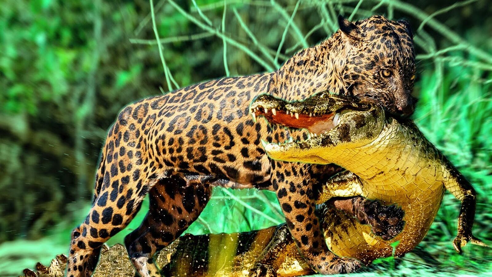 El fotógrafo de vida salvaje Nick Kleer se encontraba en el Pantanal de Brasil cuando pudo presenciar toda la secuencia de ocho minutos en la que un jaguar batalla con un caimán hasta que termina matándolo para después devorarlo junto a su pareja. ©Caters News