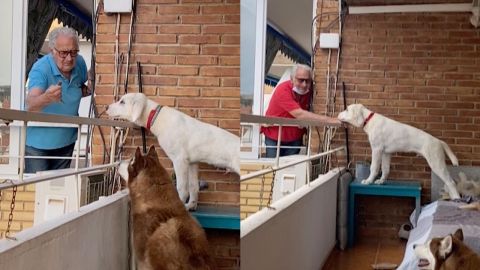 Según Isabel, Max sale todas las mañanas por la ventana que da a su terraza con un premio para sus dos perros, que esperan con paciencia a que el anciano salga. El ritual, para la mujer, es algo que les alegra el día.