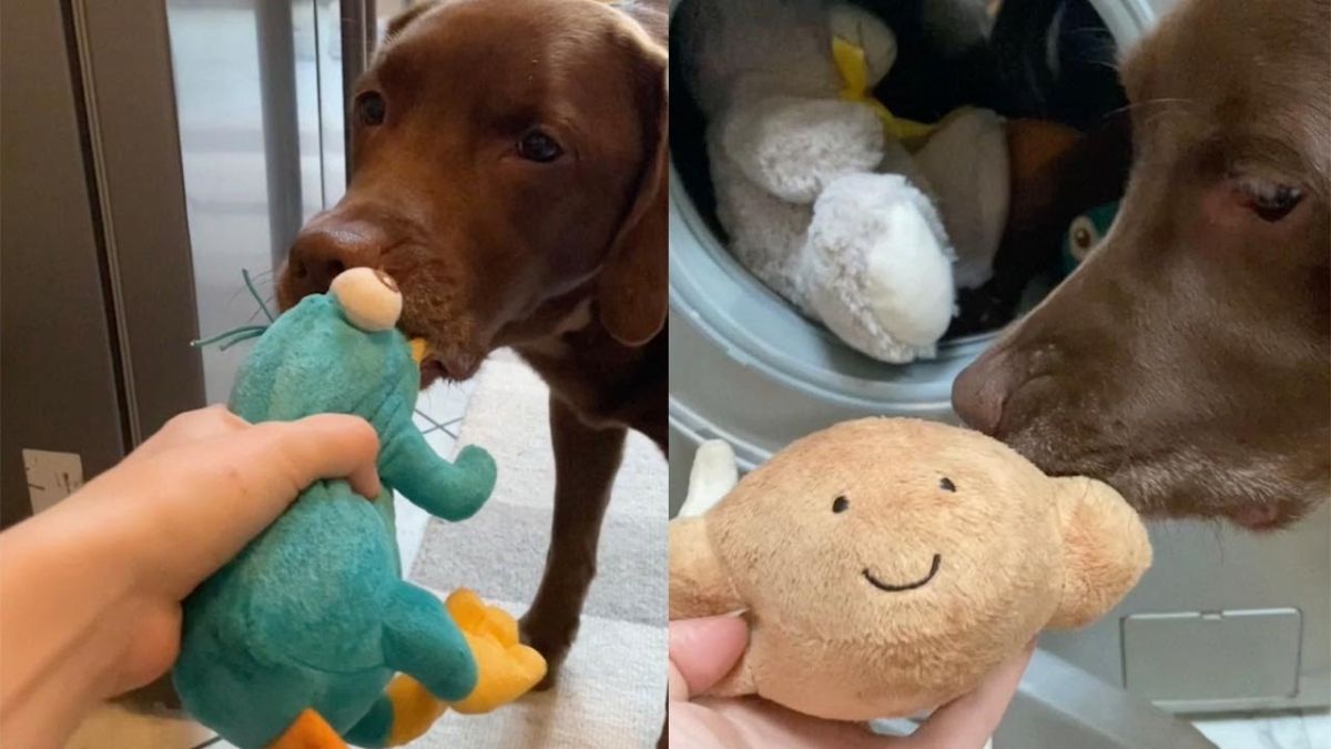 El adorable vídeo de un perro que hace todo lo posible por evitar que sus juguetes vayan a la lavadora