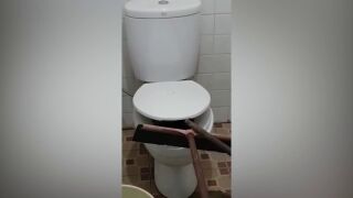 El equipo de cuatro personas tuvo dificultades para quitar la pitón mortal cuando se deslizó más profundamente en la taza del inodoro.