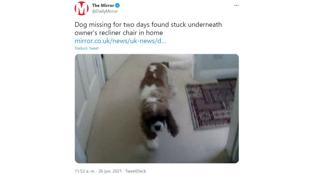 Buscó a su perro durante dos días y estaba debajo de su sillón