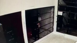 Las imágenes de CCTV muestran al hombre sacándose algo de los pantalones antes de abrir rápidamente la puerta de la celda en solo un minuto.