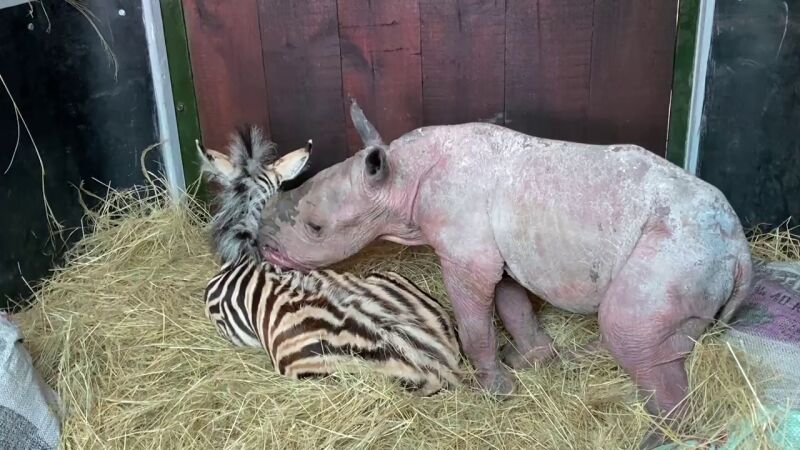 Una cebra y un rinoceronte huérfanos se convierten en mejores amigos