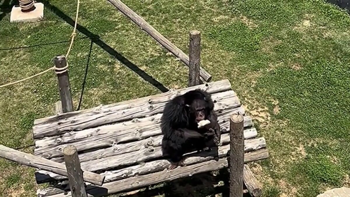 En el vídeo se ve como un chimpancé le arrojó una sandalia que se le había caído a un visitante en su recinto en un parque de vida silvestre en el este de China.