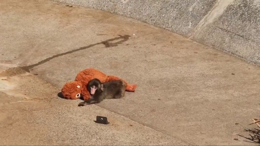 Conoce a Punch, el mono bebé abandonado que busca consuelo en su peluche