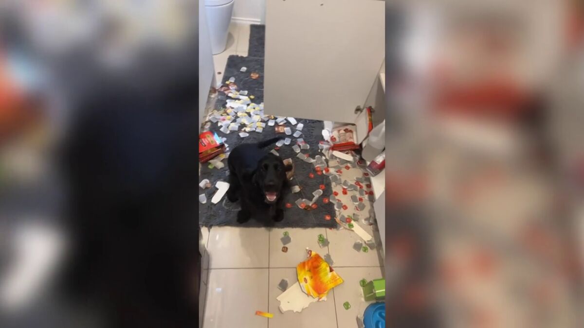 Esta mujer quedó horrorizada al descubrir el desastre que su traviesa perra dejó en su cocina.