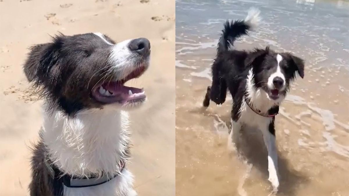 Al principio, la dueña de este perro ciego no estaba segura de cómo se sentiría su mascota en su primera salida a la playa, pero, a juzgar por las imágenes no tenía de qué preocuparse.