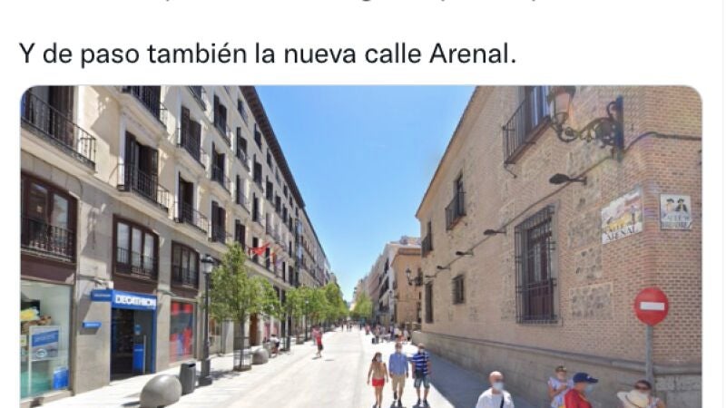 "La pandemia ha llegado ya a Street View en Madrid. Google ya ha empezado a cargar las imágenes de julio de 2021, y por primera vez vemos a gente con mascarillas por la calle. Imágenes para la posteridad. Y de paso también la nueva calle Arenal", menciona junto a la fotografía.
