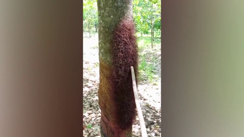 Nattakamon Pomchampa caminaba por una plantación de caucho cuando vio un extraño parche en movimiento en un árbol en la provincia de Uthai Thani, Tailandia, el 10 de marzo.