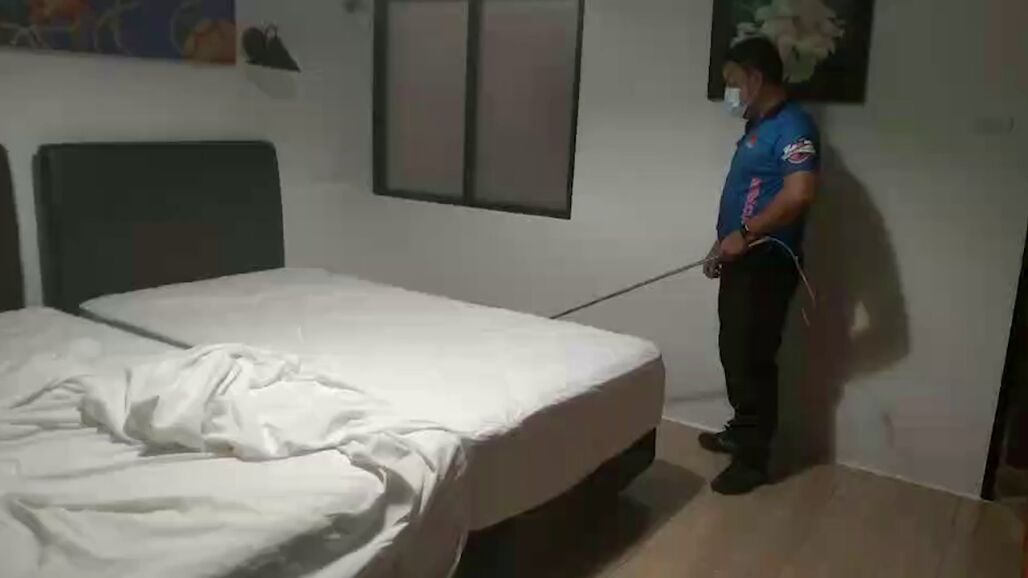 Una empleada de limpieza salió corriendo al ver al gigantesco animal que acechaba bajo la cama de un hotel en Tailandia.