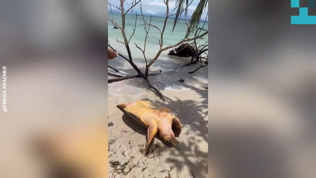 Freida Kraemer, originaria de Miami, Florida, se encontraba mostrando los alrededores de Bocas del Toro, Panamá, a un amigo, cuando ambos notaron algo inusual en la arena: una gran tortuga marina luchando por moverse, atrapada sobre su caparazón.