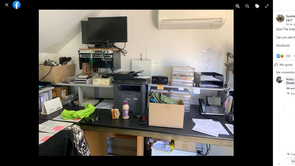 Llevan años jugando con sus seguidores en Facebook a 'Spot The Snake' y en esta ocasión queremos compartir con vosotros el difícil reto que publicaron en julio en el que piden a la gente que encuentre a una serpiente dentro de esta oficina.