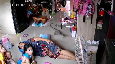 Los abuelos estaban tomando una siesta por la tarde mientras los niños miraban la televisión en su casa en Bangkok el 2 de noviembre. Sin embargo, mientras los abuelos dormían profundamente, un lagarto monitor salvaje se coló en su casa por la puerta principal abierta.