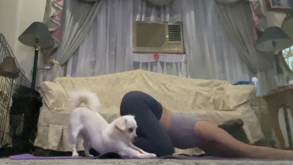 Este adorable perrito imita a su dueña mientras hace una clase de yoga