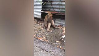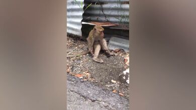 A pesar de tener una herida abierta bastante grande, el mono huyó de los vecinos que intentaron ayudarle. Tres días después fue encontrado y capturado, a la espera de que los rescatadores de animales pudieran hacer algo por él. Trataron de alimentar al primate y le dieron de beber, hasta que llegaron los sanitarios.