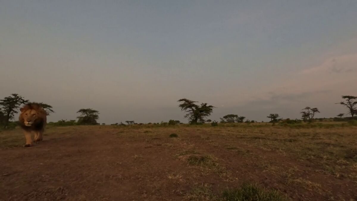 Una de las cámaras de Ahmed estaba instalada en el campo y el curioso león macho primero se acercó a ella con precaución.