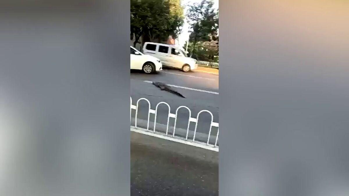 Graban a un cocodrilo atravesando una carretera en China