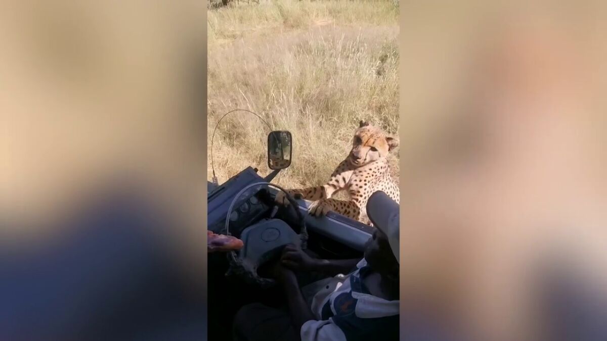 Un guepardo se intenta subir al vehículo de un safari y el vídeo ha impresionado a todo el mundo