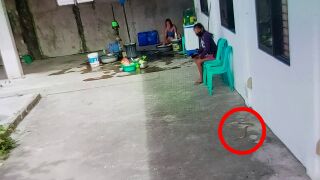 Las imágenes muestran a la serpiente deslizándose hacia una mujer cuando estaba sentada esperando afuera de una tienda cuando el perro, llamado Bam, ladró y se abalanzó sobre la criatura en la ciudad de Tarlac, Filipinas, el 5 de febrero.