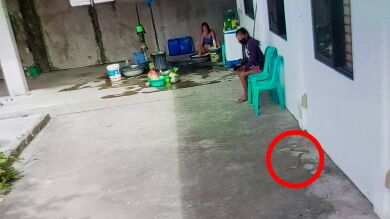 Luego, los vecinos que estaban observando todo lo que sucedía lograron ahuyentaron a la serpiente de la propiedad. No se informó que nadie resultó herido, incluida la mujer que estaba sentada cerca del peligroso animal.