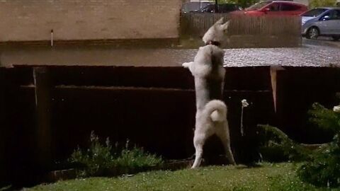 Al principio, Natalie dudó si dejar a Shadow fuera por si la tormenta lo asustaba, pero como no mostraba signos de miedo lo dejó salir.