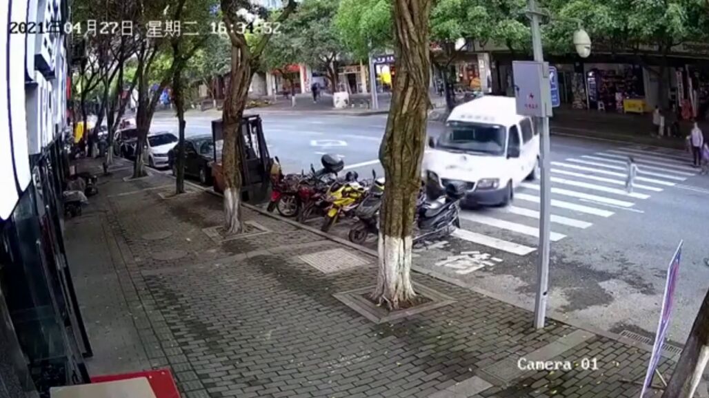 Una niña de 3 años casi fue atropellada por un camión cuando cruzó una carretera en el sur de China y las imágenes fueron grabadas por una cámara de seguridad.