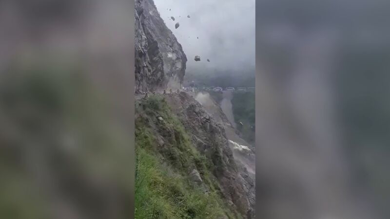 Un desprendimiento de tierra ocurrido en agosto del año 2019 y que provocó una caída masiva de rocas de diferentes tamaños disparadas como proyectiles sobre una carretera de la India quedó registrado en vídeo por un videoaficionado.