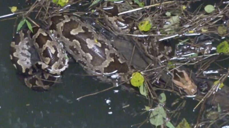 Con la esperanza de poder escapar, la pitón, exhausta y sintiéndose acorralada, regurgitó su última comida, un gato de algalia. Posteriormente, el equipo colocó a la serpiente en una bolsa y la llevaron a un bosque cercano, donde pudieron soltarla.