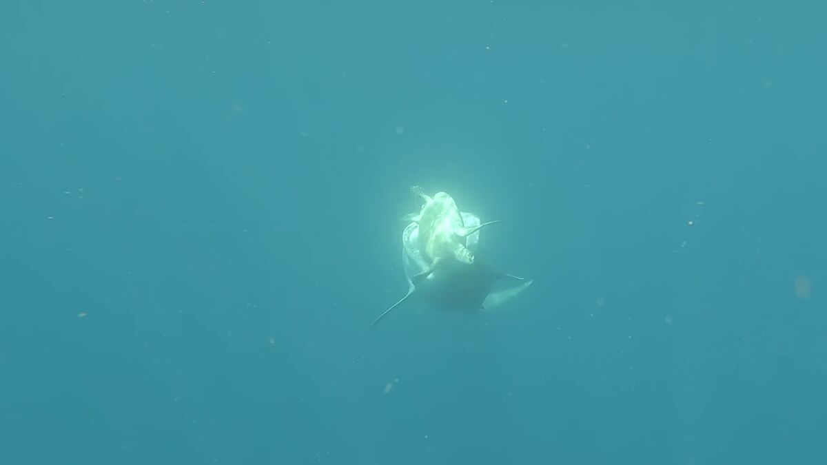 "Nos preguntamos por qué el tiburón no mordió a la tortuga para matar a su presa. Sin embargo, creemos que estaba tratando de ahogarla antes de dar la mordida fatal", señala Daryll.