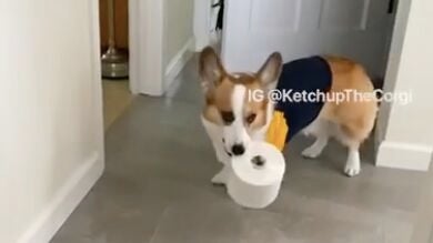 Los corgi son unos perros adorables de patitas cortas y cara de zorro que enamoran a cualquiera que se los cruce por la calle. Pero, además de ser tremendamente simpáticos, los corgi son muy inteligentes. En este vídeo, una mujer de Santa Clara, en California, ha adiestrado a su corgi, Ketchup, para que le traiga el papel higiénico cuando se lo pide. Ketchup aparece en cuanto su dueña la llama y la perrita no necesita que se lo repitan dos veces para ir al armario donde está guardado el papel y llevárselo a su dueña con rapidez.
