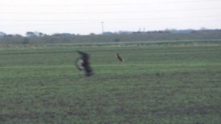 Danny Carter, de 37 años, ha estado entrenando animales, águilas reales, desde los dieciséis años. Mientras Danny estaba explorando con sus aves en Lincolnshire, Reino Unido, una liebre salvaje se acercó demasiado y estuvo a punto de ser atrapada por una de las águilas.