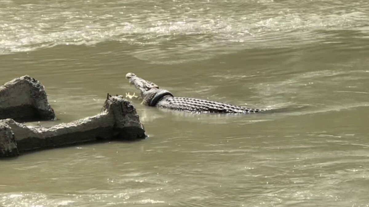 El cocodrilo vive en el rio Palu en Indionesia y desde 2016 tenía una llanta enganchada alrededor de su cuello.