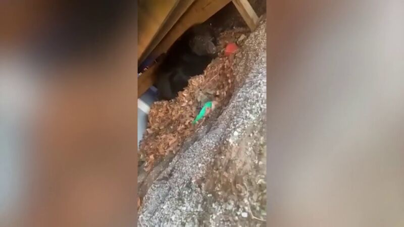 Una mujer se sorprendió al descubrir que un enorme oso negro había entrado en hibernación, debajo de la terraza de su jardín trasero.