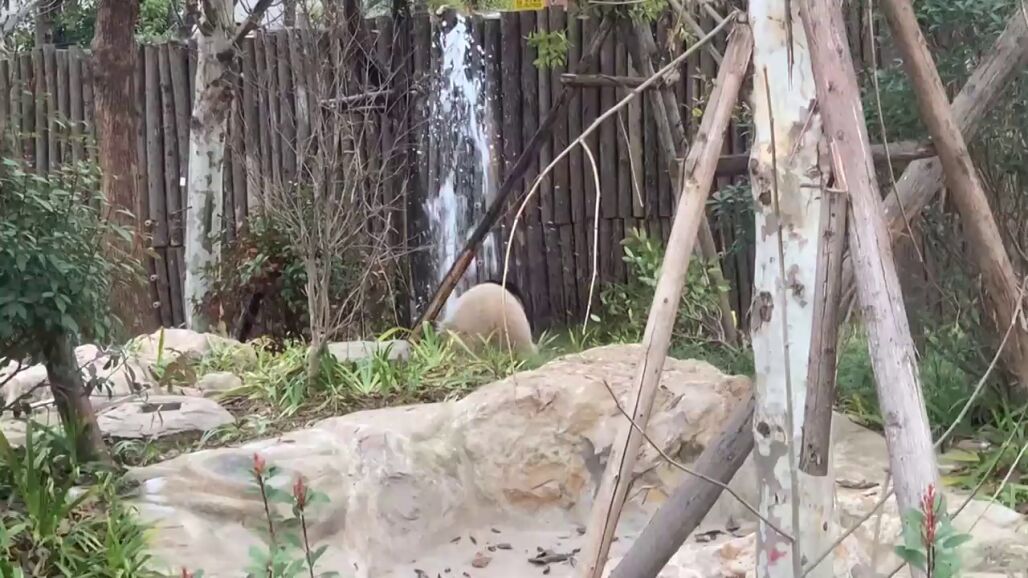 Momentos después, Meng Lan llegó al suelo y probó brevemente la libertad antes de que los cuidadores del zoológico lo llevaran de regreso a su recinto con comida.
