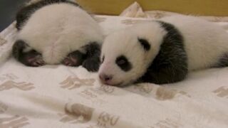 Dos cachorros de panda nacidos hace seis semanas en el zoológico de Berlín, y que todavía no tienen nombre, abrieron los ojos por primera vez, según muestra este vídeo compartido por el zoológico el 9 de octubre.