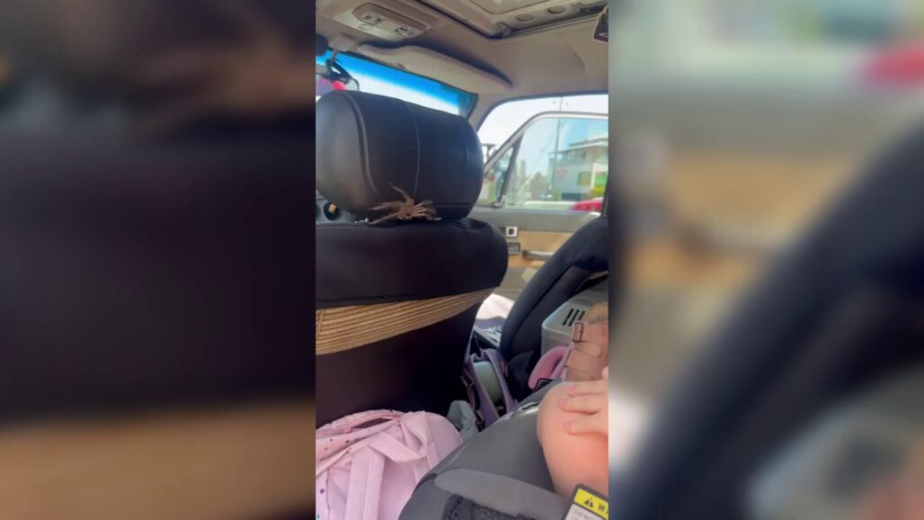 Este heroico padre recogió una araña cazadora con sus propias manos después de que se arrastrara hasta el pie de su hija en la parte trasera de su automóvil.