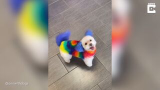 Una peluquera canina da un nuevo look a su perro tiñéndole el pelo de colores