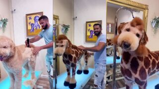 Un peluquero de perros creativo transforma a un goldendoodle en jirafa