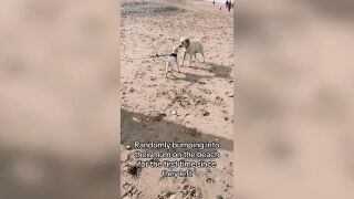 Un perrito se encuentra por sorpresa con su madre y hermano en la playa