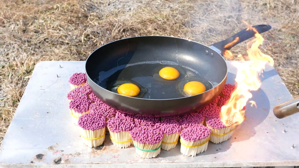 Este es el impactante vídeo en el que un YouTuber ucraniano usa 12.000 cerillas para freir unos huevos en una sarten.
