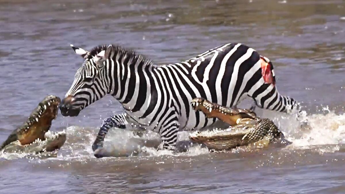 Mira el increíble momento en que una valiente cebra lucha contra cinco cocodrilos mientras intentaba cruzar un rio en Kenia.