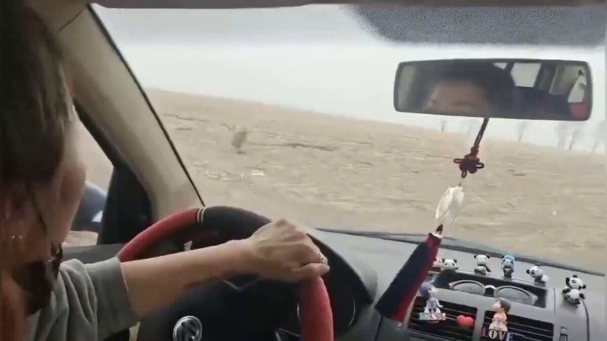 En el aterrador video, grabado en la ciudad de Mishan en la provincia de Heilongjiang el 23 de abril, se escuchó a un hombre y una mujer en un automóvil gritar "corre rápido" repetidamente mientras el automovilista se daba la vuelta para escapar.