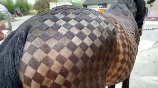 Un veterinario chino esquila a un caballo con forma de tablero de ajedrez y las redes explotan con el diseño