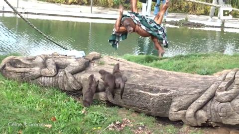 VÍDEO: La increíble pelea de un orangután y tres nutrias por una manta en un zoo