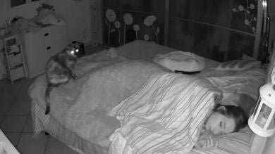 Una mujer pasó una noche inquieta mientras trataba desesperadamente de dormir con dos gatos en su habitación. Irene Marziali, de 40 años, de Monteriggioni, Italia, se grabó a sí misma mientras intentaba dormir en su habitación mientras los gatos Coffee, de seis, y Candy, de dos, paseaban.