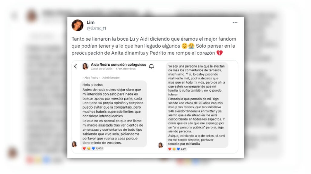 Incluso los detractores de Aída han estado de acuerdo en que las amenazas y el sufrimiento de la familia son dos líneas que no se deben cruzar, y es probable que estos mensajes hayan conseguido calar en muchas de las personas que han participado en la cancelación de Aída Redru durante los últimos días. Aunque todavía queda mucho para que la tempestad pase y se aclare un poco más todo lo que ha sucedido, lo único que se puede hacer es mandar mensajes de apoyo a ambas tiktokers para que puedan pasar por este mal trago de la forma más leve posible.