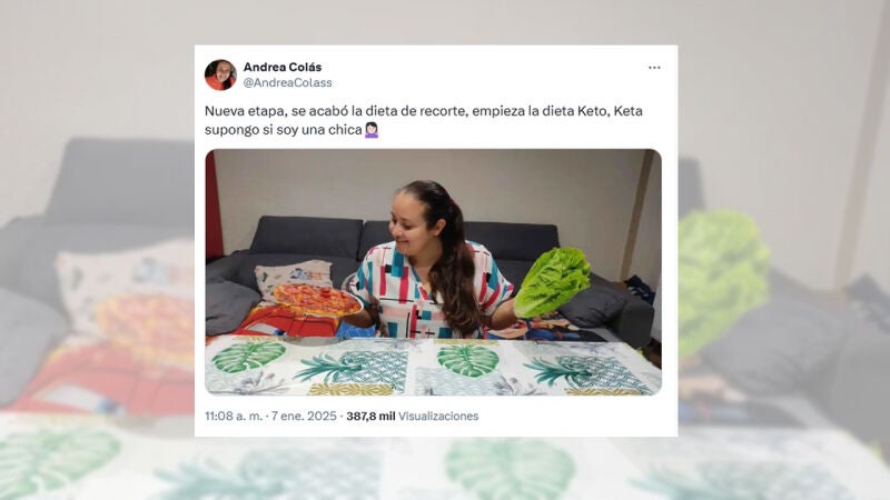La influencer Andrea Colás, popular por su controvertida dieta de recorte, vuelve a captar la atención en redes al anunciar su transición a la dieta keto, aunque su presentación del cambio ha generado un aluvión de comentarios por un peculiar juego de palabras.