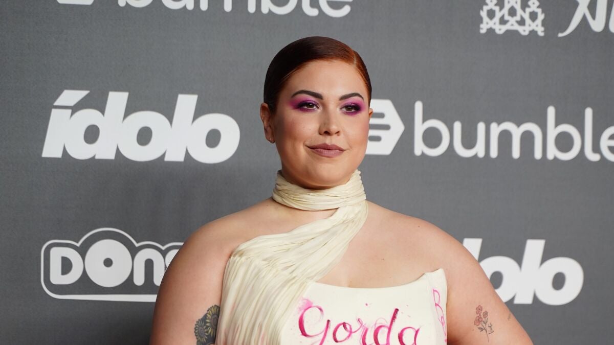 "Gracias a los Premios Ídolo y al jurado por este reconocimiento, no solo por el premio sino por permitir que una creadora de contenido gorda, activista contra la gordofobia, que muchas veces va en contra de lo que ren redes sociales se considera correcto, esté hoy aquí", decía el arranque de su nuevo vestido.