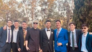 El protagonismo viene, en parte, por los invitados masculinos y más famosos: intentaron seguir esa norma no escrita de ponerse guapos, pero no lo bastante guapos como para eclipsar al novio. La típica foto grupal de los panas celebrando un matrimonio ajeno ha dejado una estampa como mínimo llamativa en territorio estilístico.