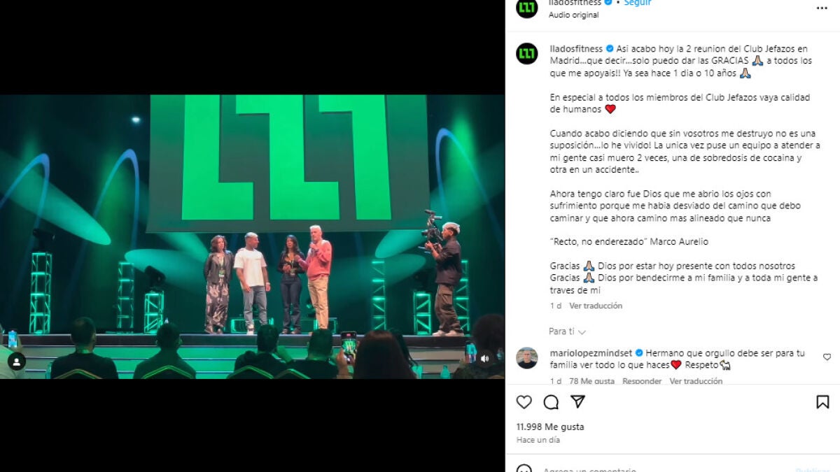 "He experimentado uno de los mejores días de mi vida. Empezando conduciendo mi Lamborghini sobre las 8:30 de camino al evento de Madrid he viajado al pasado. Misma carretera y misma hora que cuando en bus iba a la Universidad. Ahora iba en Lamborghini con la mujer de mi vida a mi propia Universidad, que ya ha creado líderes que están ganando masivamente en todas las áreas de la vida", escribió Llados.